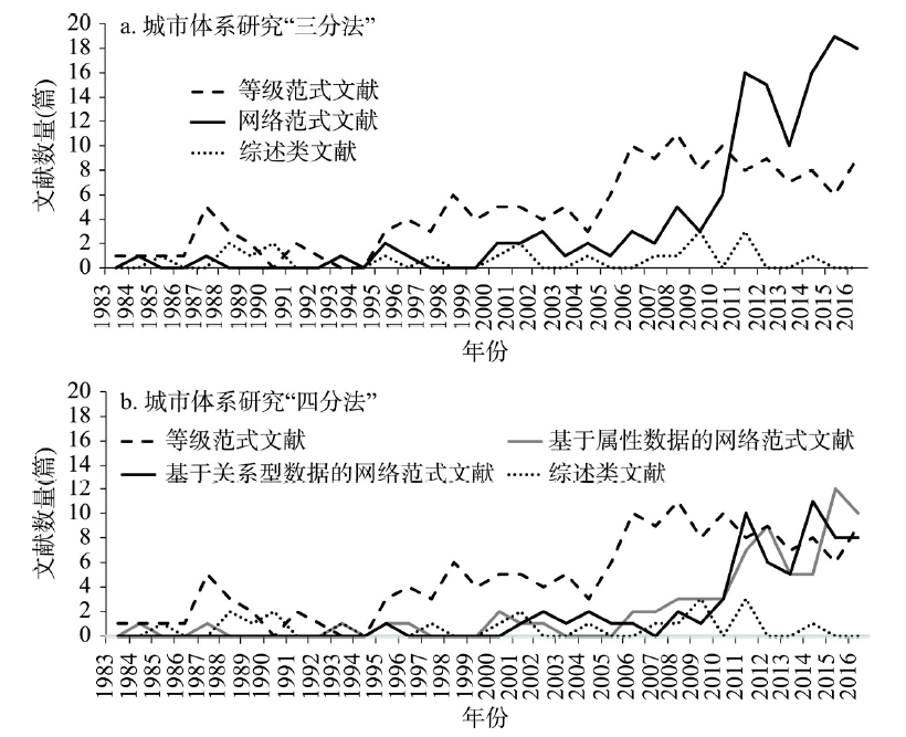 Fig. 1 Literature statistics of urban system research paradigm图1 城市体系研究范式的文献统计 |
