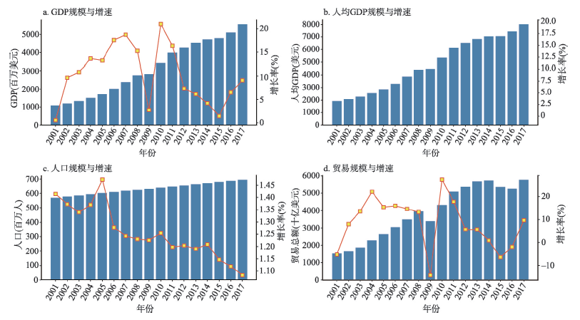 《区域全面经济伙伴关系协定》(RCEP)合作框架正催化全球经济版图格局发生剧烈演变,为应对“百年未有之大变局”,中国需要以“一带一路”倡议为契机,以环南海区域为战略基点,在深入研究区域发展特征的基础上,探讨建设“中国+东南亚”战略性一体化经济区的可能性并付诸实施。本文以环南海区域为重点,结合区域发展重点指标描述了其整体发展特征,利用产业结构相似度指数和贸易结构重合度指数,对环南海区域产业与对外贸易的结构性特征进行了剖析,并刻画了环南海区域核心增长区域的空间网络特征,最后讨论了环南海区域构建多元一体化经济区的前景并提出政策建议。结果表明:① 2000—2017年环南海区域主要发展指标增长态势强劲,发展速度和质量远超全球同期平均水平。② 在全球产业转移周期阶段与空间路径的双重驱动下,环南海区域形成了“澳新港—粤闽台文马—滇桂琼泰印菲越—缅老柬”四大梯级发展格局。③ 环南海区域11个国家间产业结构相似度指数和贸易结构重合度指数均处于较高水平,兼具“横向一体化”和“纵向梯级化”复合特征;产业结构与全球贸易商品结构呈现出“高端化”和“低端化”并举的态势。④ 环南海区域已经形成九大核心增长区域,增长极的极化与扩散效应使得不同区域之间的优势产业和出口商品类型呈现相似性和互补性。⑤ 展望未来,新一轮全球产业转移及其引致的全球价值链重组将构建起深度匹配地区资源禀赋特征的区域一体化生产—消费网络,而城市群、高速交通等空间实体所构建的“点—轴”空间网络和“内—外”开放合作政策平台也将更好保障一体化经济区的构建与发展。