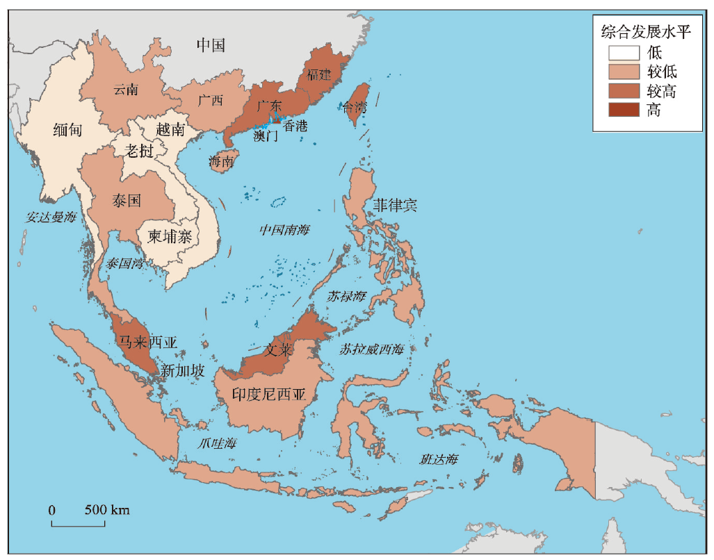 表1 环南海区域综合发展水平评价指标体系Tab. 1 Evaluation index system of comprehensive development level of SCSR |