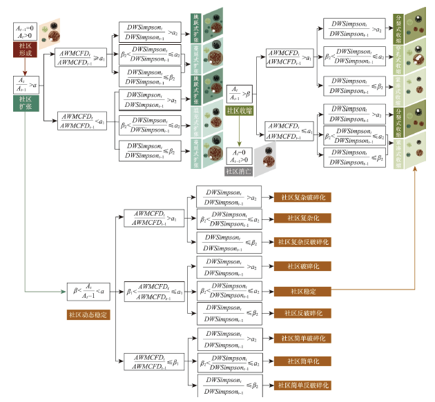 相比于其余部分空间实体,动态社区本质上是彼此之间通过群体移动紧密连接的一系列地理实体的集合,具有生命周期特征。然而目前对于动态社区的时空变化分析仍缺少系统的研究方法。对此,本文首先基于群体出行,对时空交互复杂系统进行网络建模;第二,提取网络中的动态社区,其本质上是由于城市功能活动场所和社会资源分布不均匀、群体出行行为的规律性和多样性导致的动态人地交互而产生的动态城市空间组织;第三,融合景观生态学理论,构建动态社区时空变化模型,分析社区时空变化聚类模式,形成社区提取—动态变化—聚类分析方法框架;最后,以武汉市三环内区域为例应用该方法框架。结果表明:① 基于群体出行活动提取的社区与武汉市现有行政区划具有相似性与差异性,其更能反映以人为中心的城市动态空间组织;② 社区表现出明显的“形成—扩张—稳定—收缩—消亡”的生命周期规律;③ 不同社区时空变化规律具有差异性,通过聚类,其可以被分为短时社区、中时社区与长时社区,且每类社区具有稳定、鞍形、波动等一种或多种形态模式特征,对于城市动态规划管理具有重要意义。本文突破了传统静态社区分析方法的局限性,有助于推动网络动态特征的探索,加深对动态人地交互规律的理解。