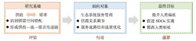 生态系统服务流指示实际被使用的服务,是连接生态系统服务供给与需求的纽带。理解生态系统服务流的概念内涵、厘清其量化方法是推动生态系统服务流有效实践应用的基本前提。近年来生态系统服务流概念愈发受到重视,但仍然缺乏连接概念内涵、量化方法和实践应用的系统性梳理。因此,为强化生态系统服务供需评估的实践性意义,本文基于过程、数量和空间3种视角梳理生态系统服务流的概念内涵,据此明晰生态系统服务流的量化方法,探讨生态系统服务流系统研究框架。研究认为,应该建立“生态系统服务供需评估—生态系统服务管理行动—人类福祉提升愿景”系统性研究框架,聚焦生态学意义与地理空间过程、利益相关者角色和面向人类福祉提升的可持续决策系统,将生态系统服务流研究推向更广阔的发展前景与实践空间。