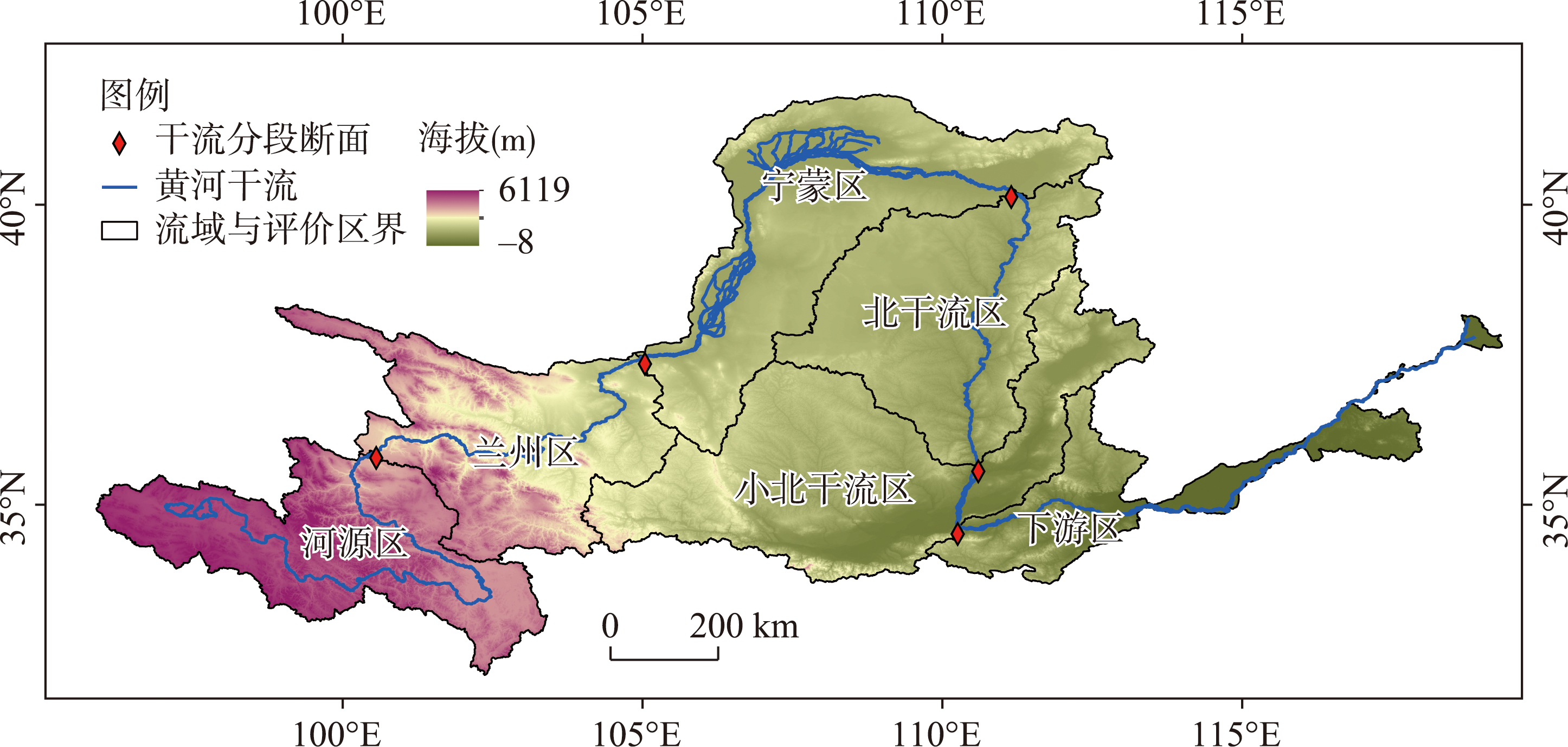 | 河段 | 河源区 | 兰州区 | 宁蒙区 | 北干流区 | 小北干流区 | 下游区 |