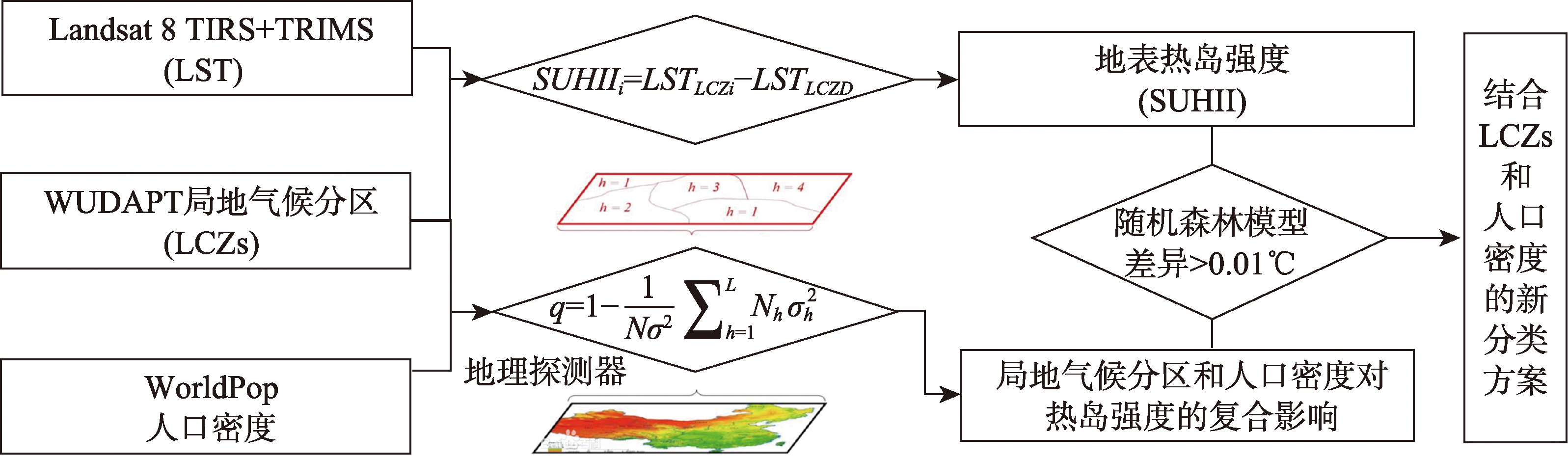 局地气候分区与人口密度的复合作用对城市热岛效应的影响