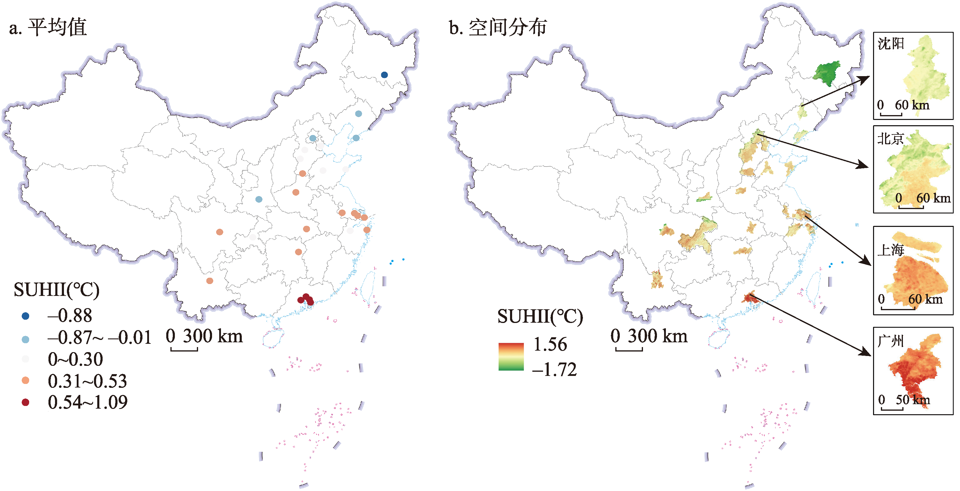 | 原始SUHII(℃) | 更新SUHII(℃) | 原始SUHII(℃) | 更新SUHII(℃) | |||