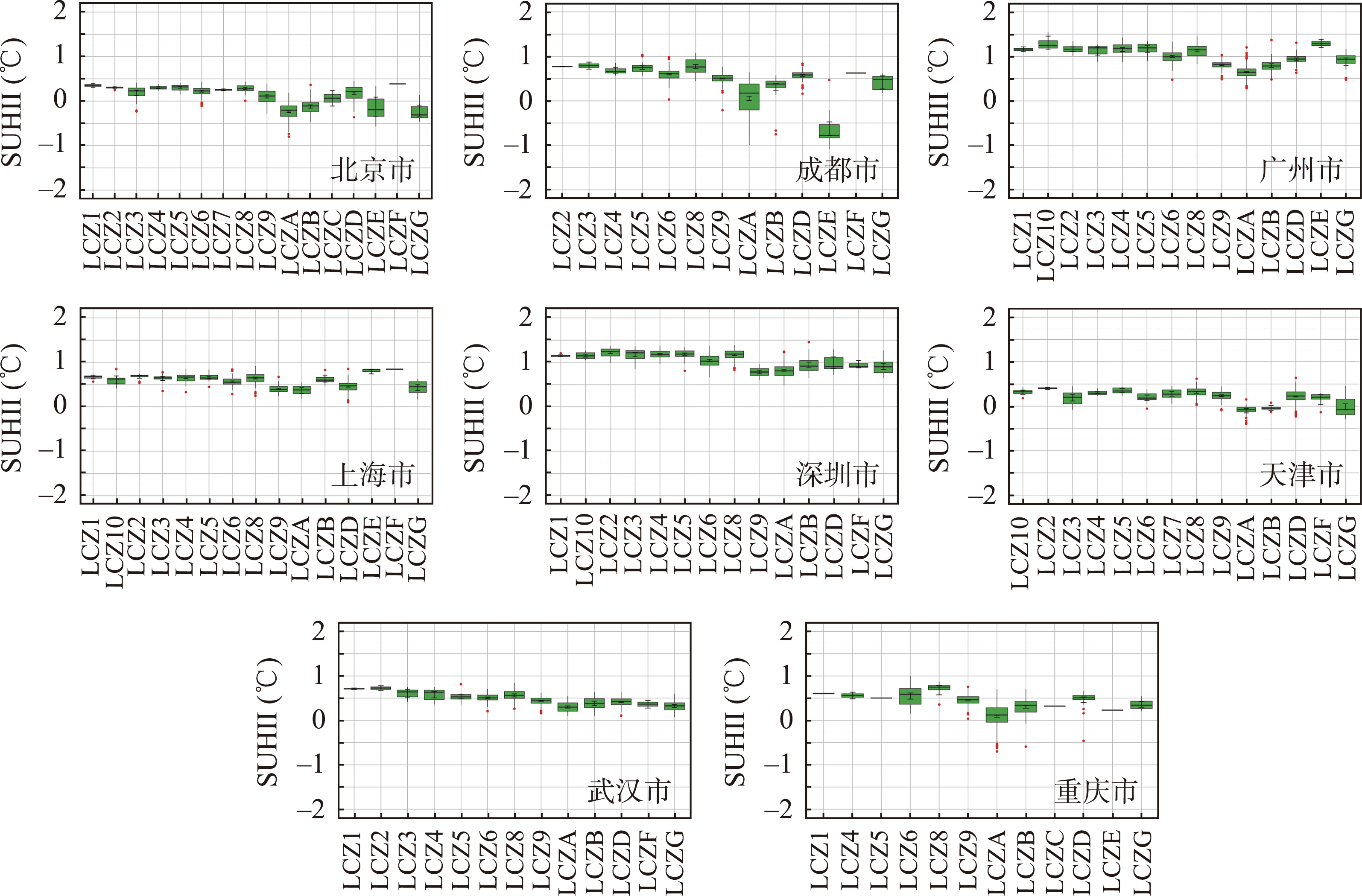 注:上海市没有LCZC类型,因此其SUHII值为空。 |