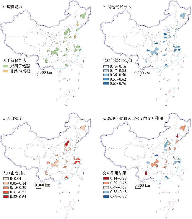 表4 全国及各超大、特大城市SUHII因子探测结果Tab. 4 Factor detection results of SUHII for China's super-and mega-cities |