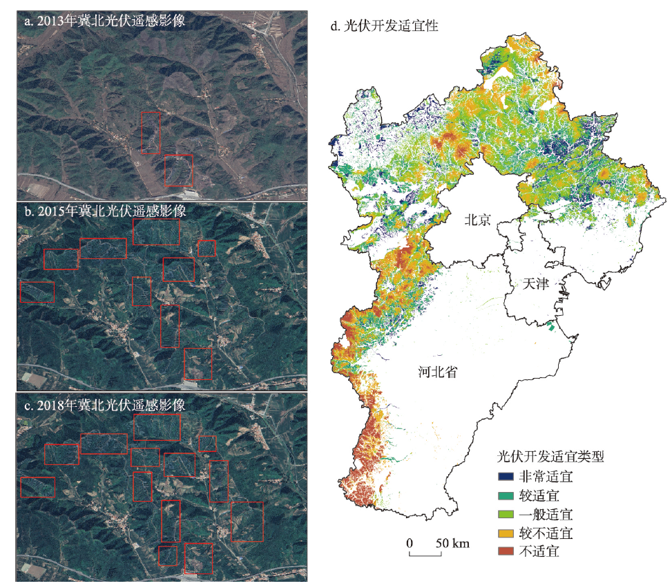 注:图a~c中的红框内为光伏区域。