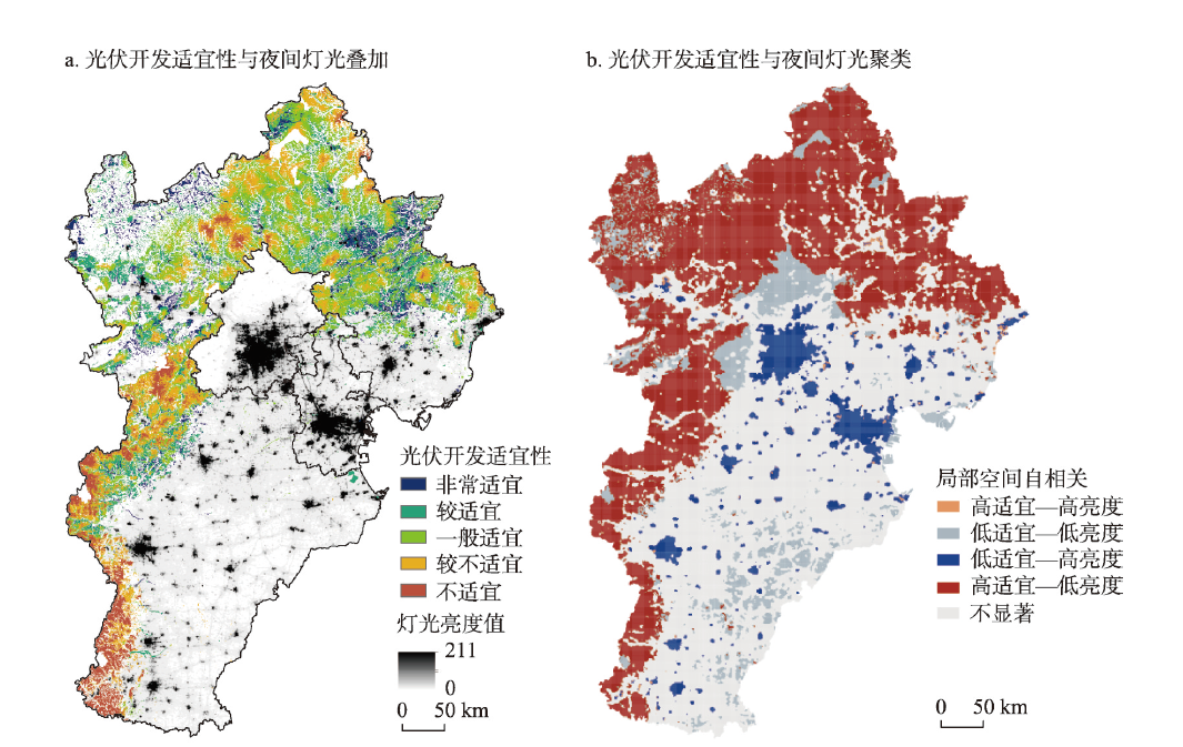 京津冀光伏开发适宜性与夜间灯光数据叠加图