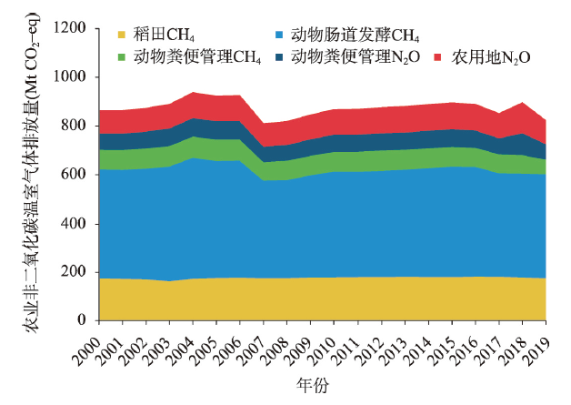 2000—2019年中国农业源非二氧化碳温室气体排放量