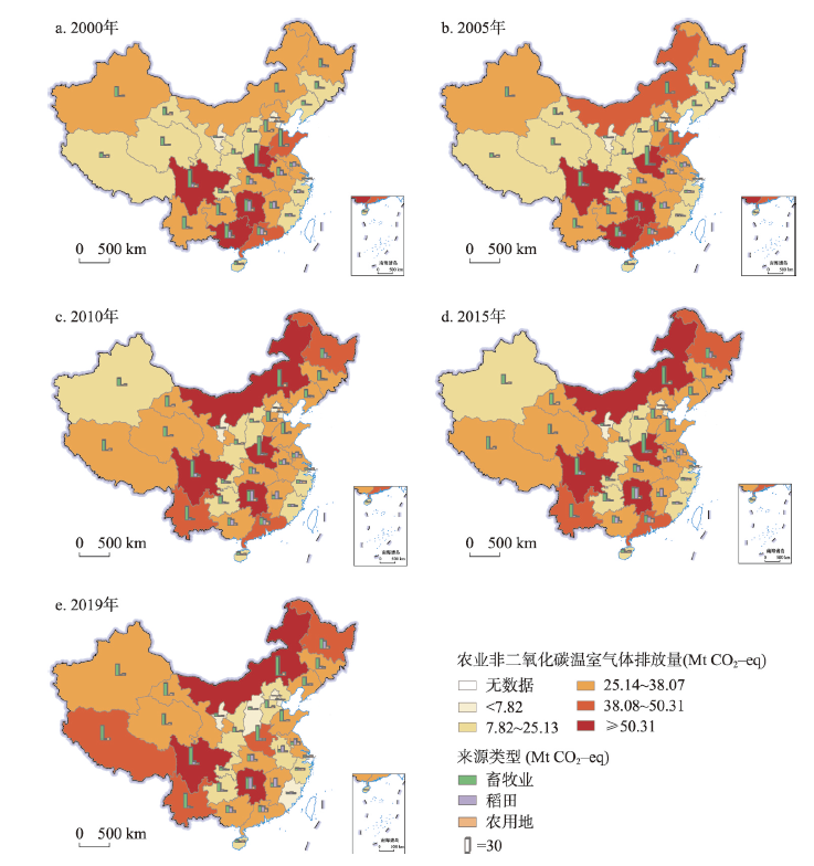 2000—2019年各省份农业源非二氧化碳温室气体排放及来源类型