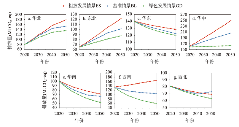 各地区农业源非二氧化碳温室气体排放量情景预测