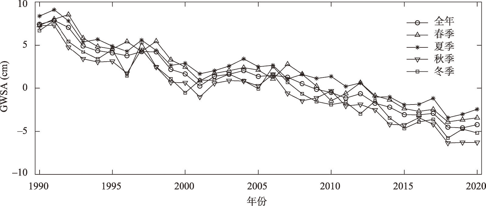 天山北坡GWSA的年际变化