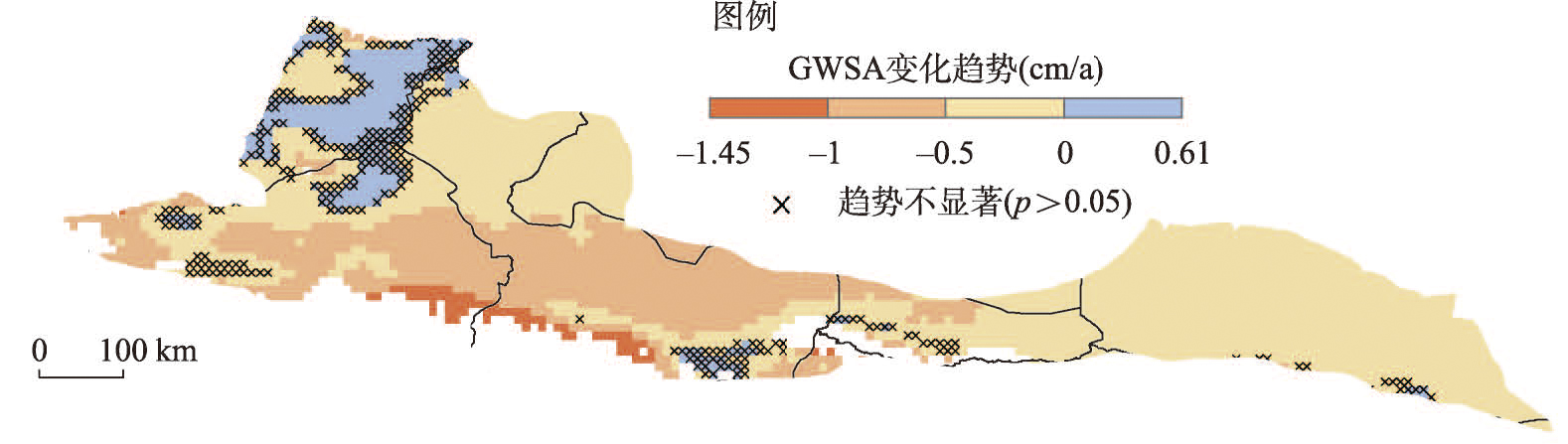 GWSA年际变化趋势的空间分布