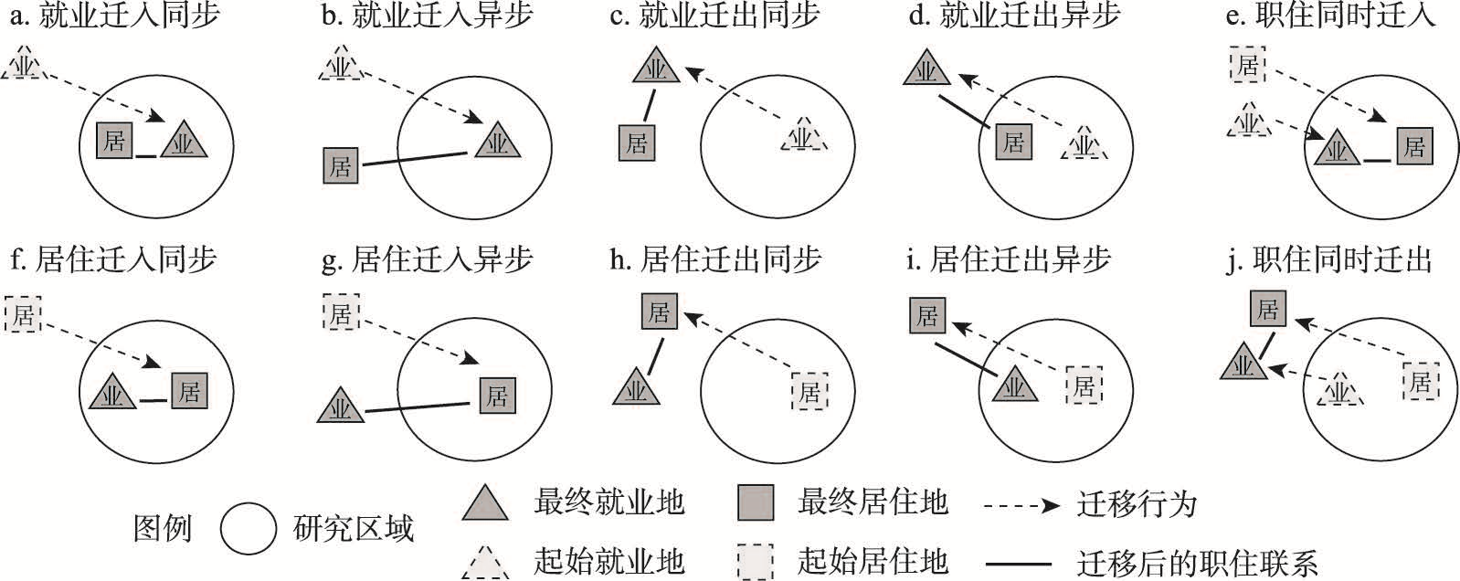 职住迁移同步/异步的概念图