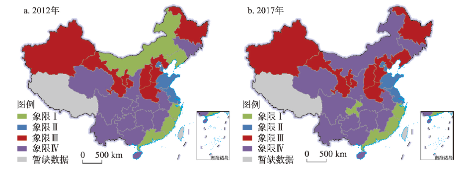 2012年和2017年中国各省份间贸易所产生的溢出效应
