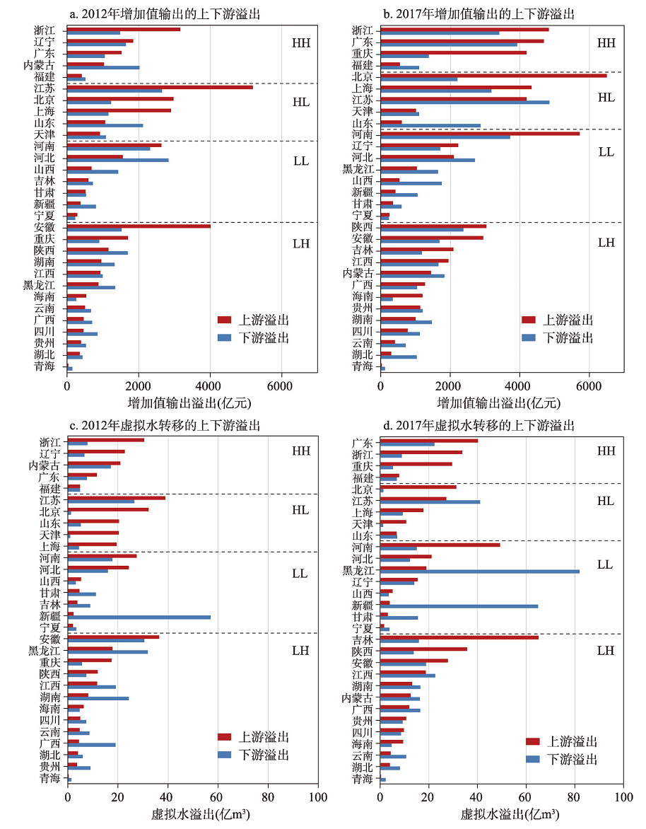 转移的虚拟水量与上下游虚拟水溢出量间的对比