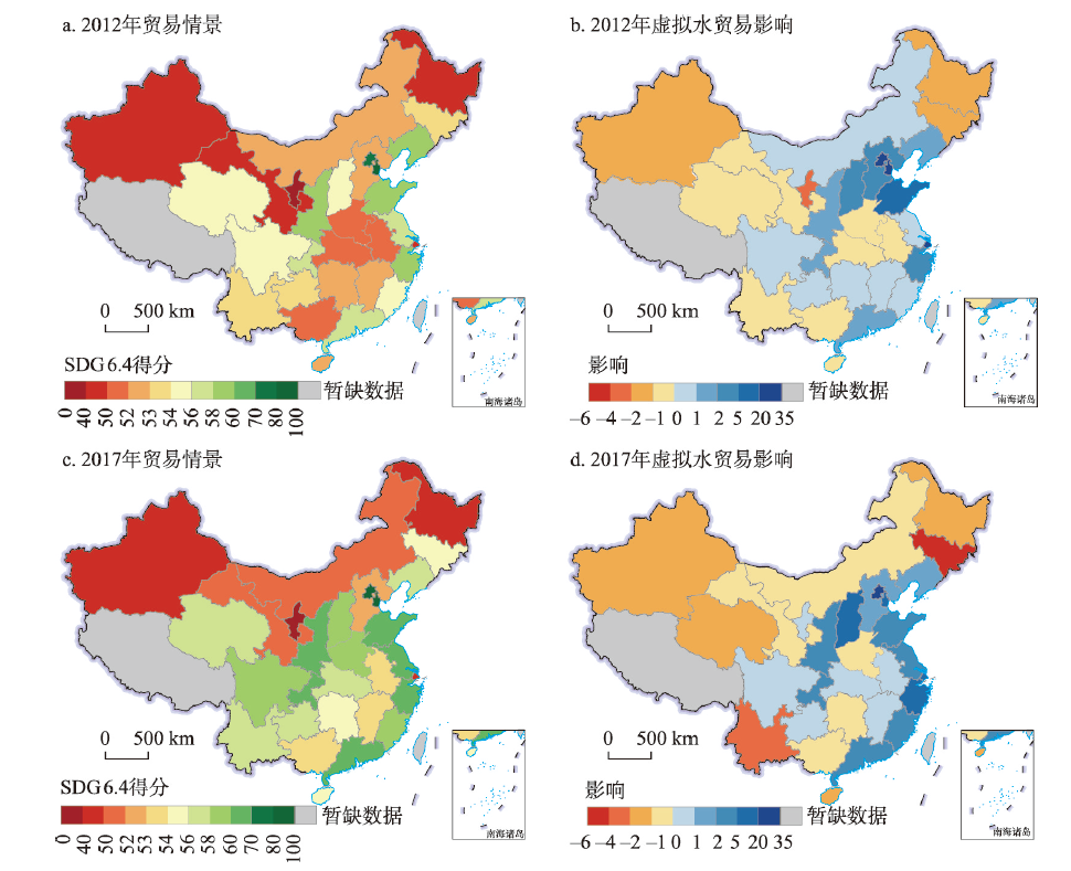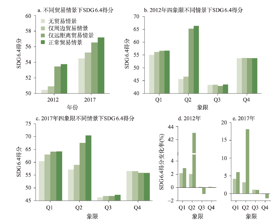 虚拟水贸易情景下中国SDG 6.4目标得分与影响