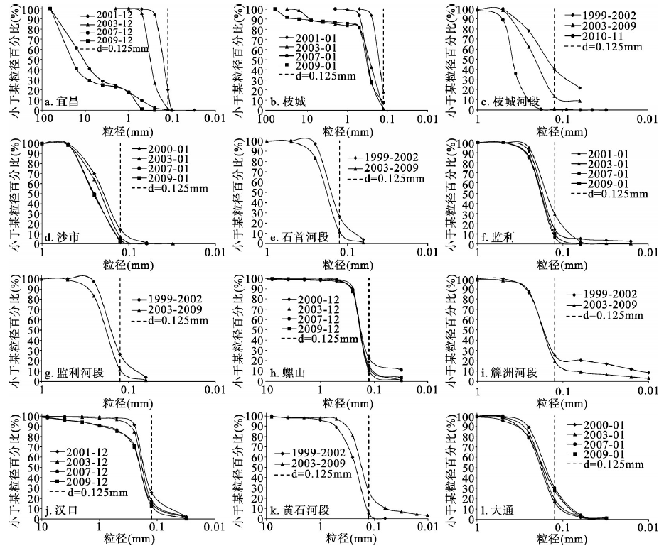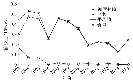 2003-2014年宜昌至监利河段d > 0.125 mm泥沙变化