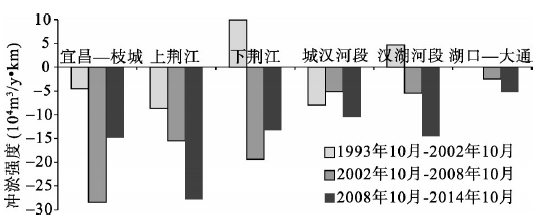 三峡水库坝下游河段冲淤强度变化