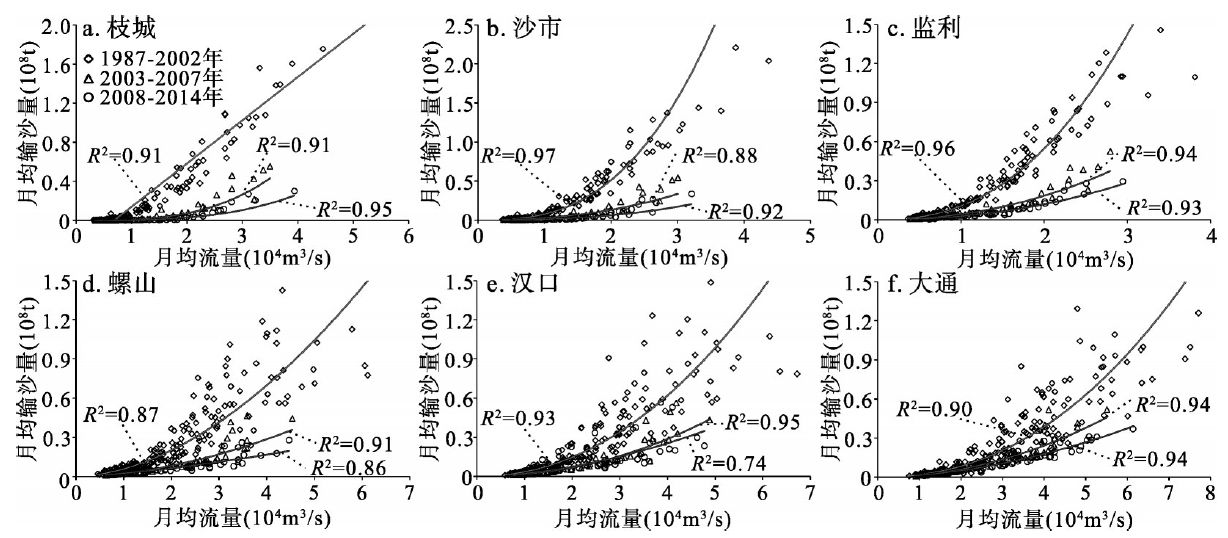 三峡水库坝下游水文站月均输沙量与流量相关关系