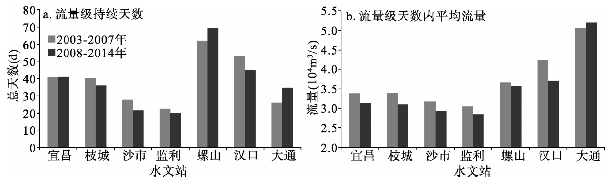 2003-2014年三峡水库坝下游各水文站洪水流量及持续时间变化