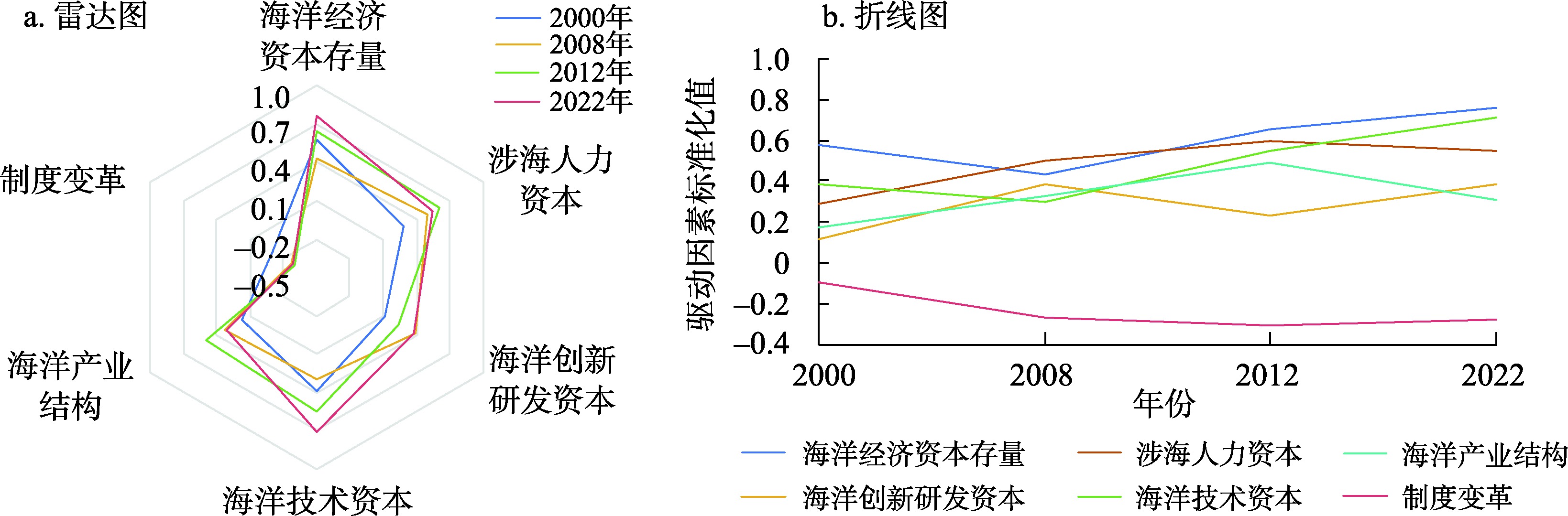 The oceans are strategically important for high-quality development. This study aimed to empirically analyze the driving degree of each factor type of the three main marine economic circles on the marine economic growth using the extended Cobb-Douglas production function, which contains elements, structures, institutions, and other factors. A spatial panel data model was used to test the working method of spatial convergence. The results show that (1) the factors influencing marine economic growth are ordered by their driving degree as follows: marine economic capital stock > sea-related human capital > marine technology capital > marine industrial structure > marine innovation and research capital, whereas institutional change has a negative effect. Among these, marine economic capital stock has the most significant driving effect, contributing approximately 4.29%, 4.35%, and 4.59% of the growth of marine economies in the northern, eastern, and southern marine economic circles, respectively. Currently, China's marine economy relies on capital for growth. There is substantial spatial dependence on marine economic growth in coastal areas. (2) The factors affecting the gap in regional marine economic growth include marine economic capital stock, marine innovation and research capital, marine technology capital, institutional change, and marine industry structure. Among these, marine economic capital stock is the most prominent, contributing 33.47%, 31.41%, and 30.92% to the gaps between the northern and eastern, northern, and southern, and eastern and southern marine economic circles, respectively. Furthermore, sea-related human capital can moderate the growth gap in the marine economy. (3) Convergence analysis shows that σ-convergence is more significant in the eastern marine economic circle, whereas the northern and southern marine economic circles are not obvious. In terms of β-convergence, the three major marine economic circles have significant absolute β and conditional β-convergence characteristics. The order of convergence speed is "eastern > southern > northern" and the conditional β-convergence speed is higher than that of the absolute β-convergence. Although the spatial gap narrows gradually, it cannot be eliminated in the short term.