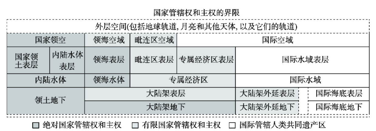 Fig. 1 National territory of jurisdiction and sovereignty图1 国家领土主权和管辖权范围界定 |