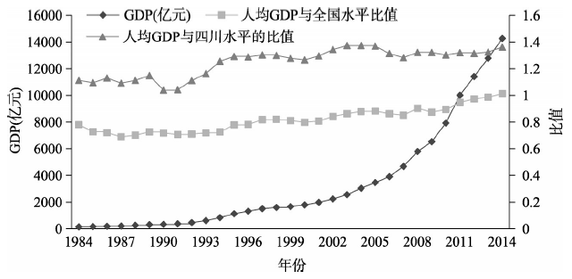 注:2015年、2016年重庆市行政区划仍有重大调整,但由于本文时间序列数据限于1984-2014年间,因此对后两年的区划调整概况未作介绍。 |