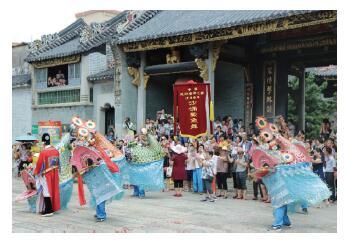 | 视觉 | 建筑:村内的房子;狭窄的村道;具有鳌鱼文化特色的村内建筑物;大量观众;同行的其他表演者 |