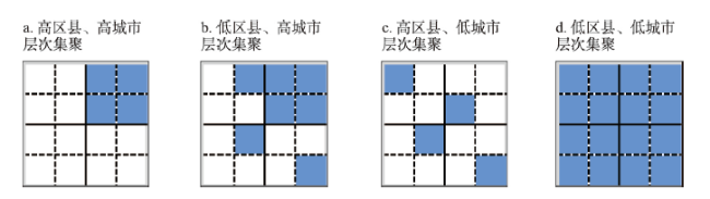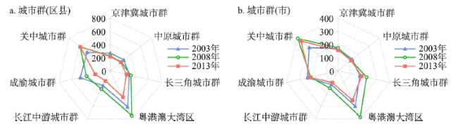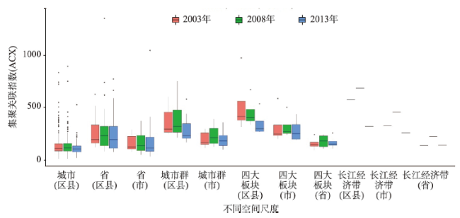 注:“√”表示文中涉及的空间尺度,如第一个“√”表示本文研究了市中的产业在区县层次的空间关联性。 |