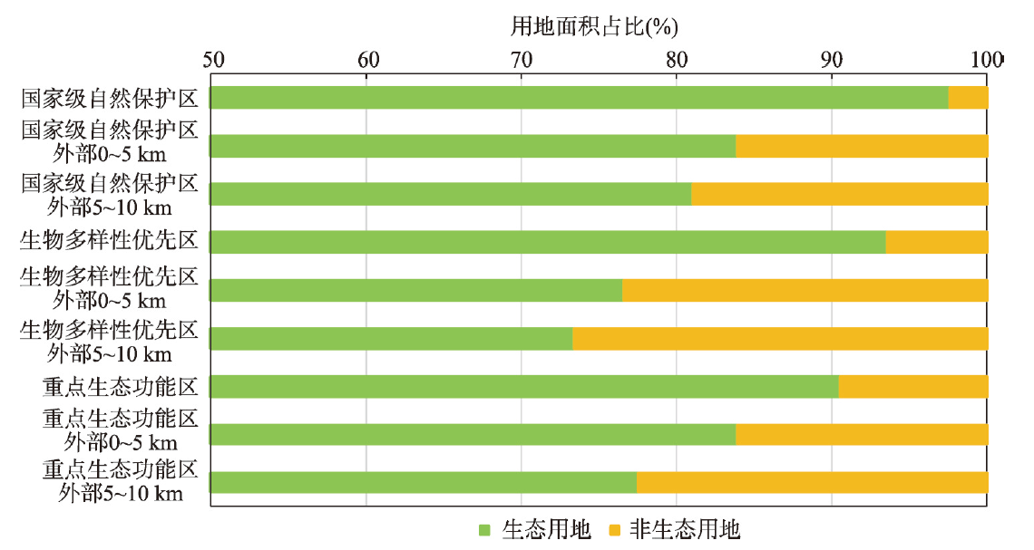 | 国家级自然保护区 | 生态用地 | 94.75 | 0.98 | 0.05 | |