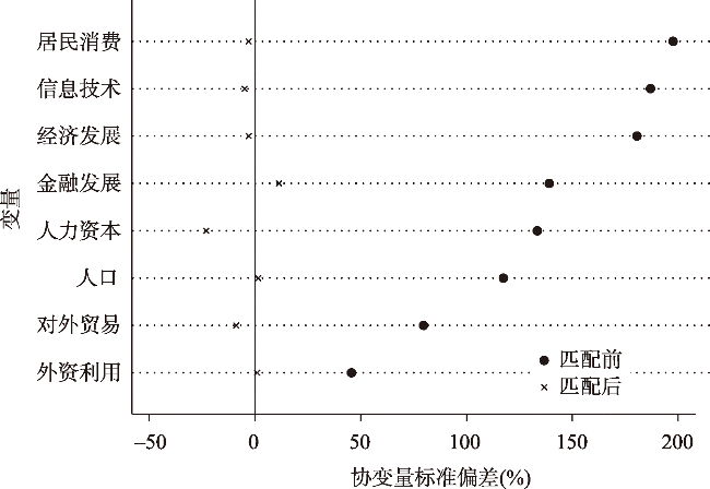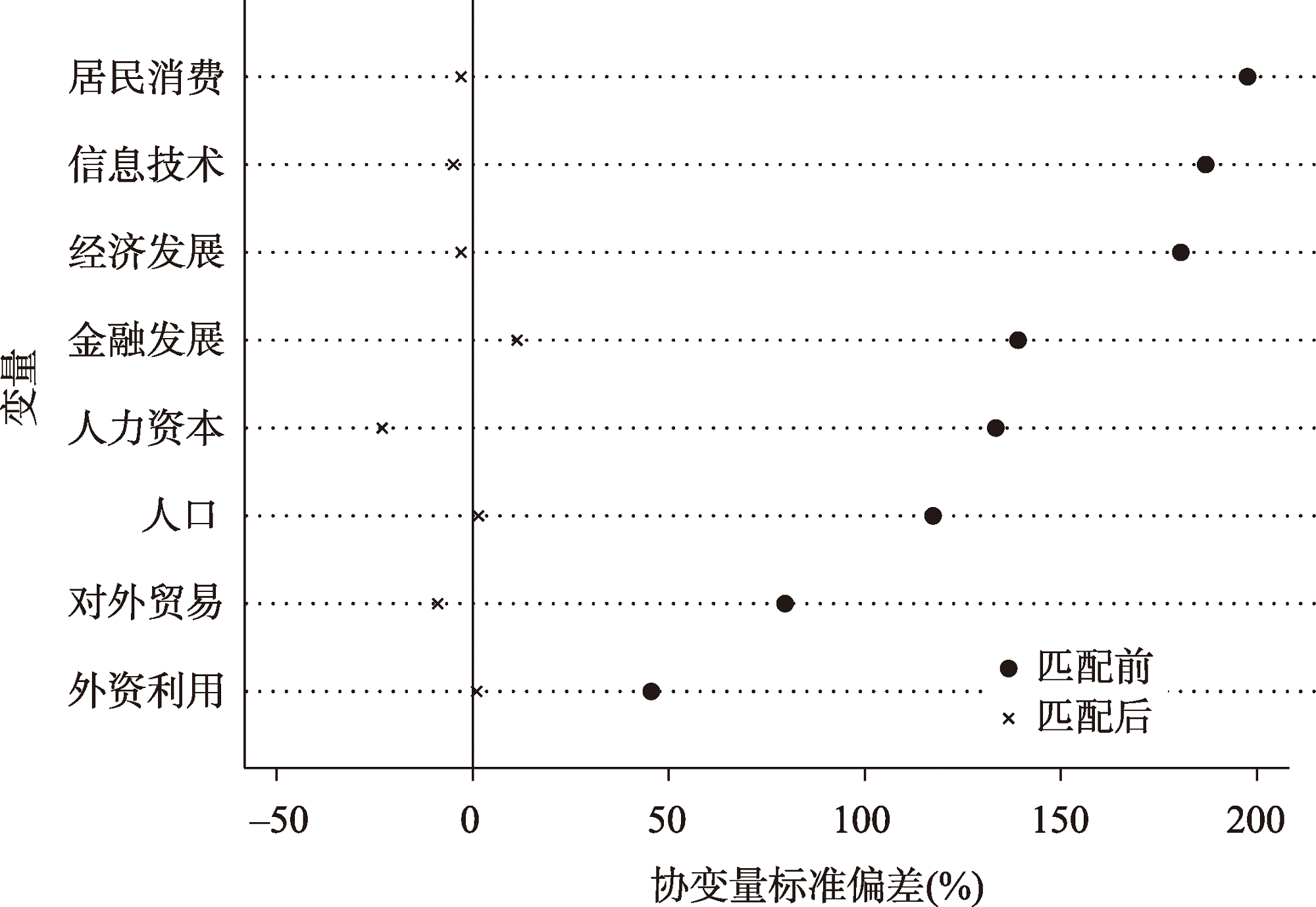 | 变量 | 匹配前(U) 匹配后(M) | 均值 | %偏差 | %偏差降低 | t检验 | ||