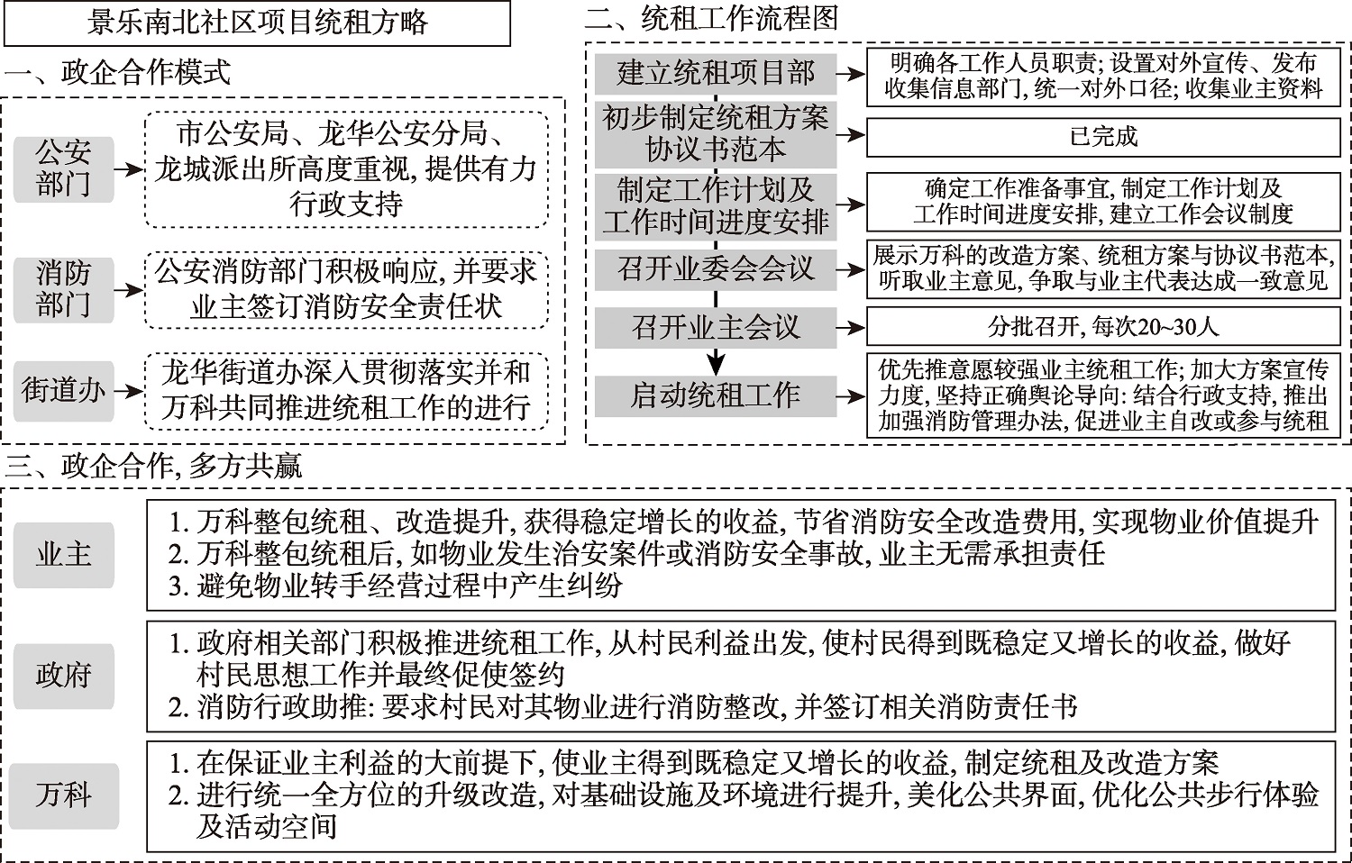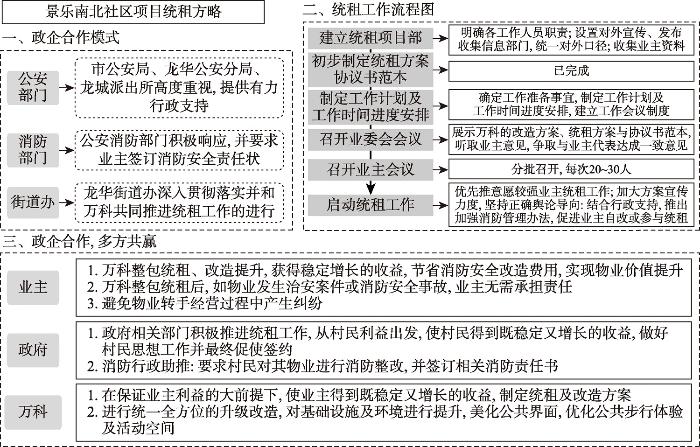 | 城市空间功 能升级改造 | 原三和地区长期依赖低成本的边缘化社会基础设施,空间功能单一,城市空间整体低标准,难以满足现代化管理与生活品质提升的要求。 | 借助政企合作推动城中村社区改造,实施统租模式对出租屋进行网格化、分类分级管理,引入高品质物业品牌,进行消防整改和环境优化,加强社区公共设施的建设与长期管理机制的建立。 | 将区域由边缘空间转变为正规、长效管理的城市生活区,平衡多方利益,实现社区品质提升和社会经济的规范化发展。 |