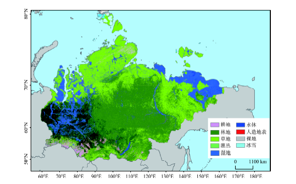 | 图3 2010年西伯利亚地表覆盖总空间分布图 |