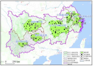 | 图2 长江经济带城市群的空间格局与范围示意图 |