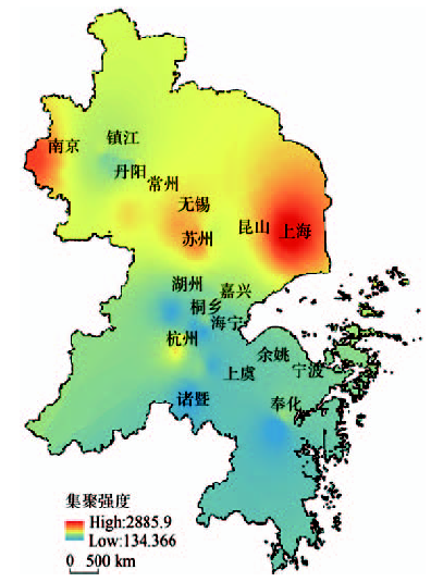 | Fig.3 Intensity of urban agglomeration in the Yangtze River Delta Urban Agglomeration |