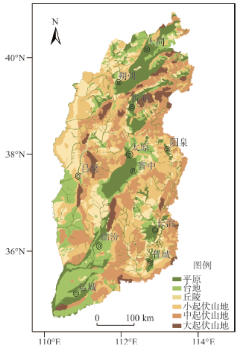 | Fig. 2 Distribution of the basic geomorphic types in Shanxi Province |