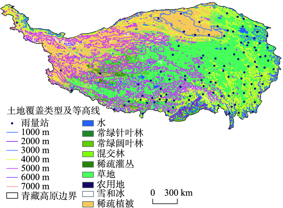 | 图1 青藏高原高程及雨量站分布图 |