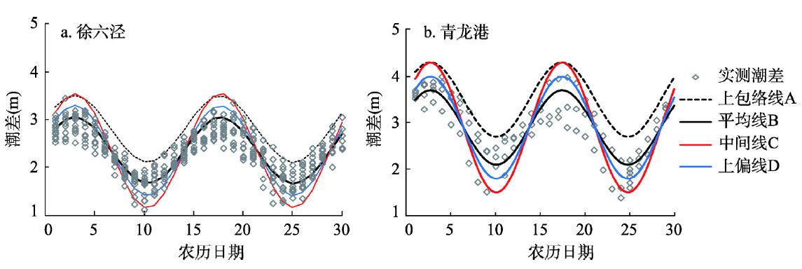 图7 俆六泾和青龙港潮差和农历日期的关系 |