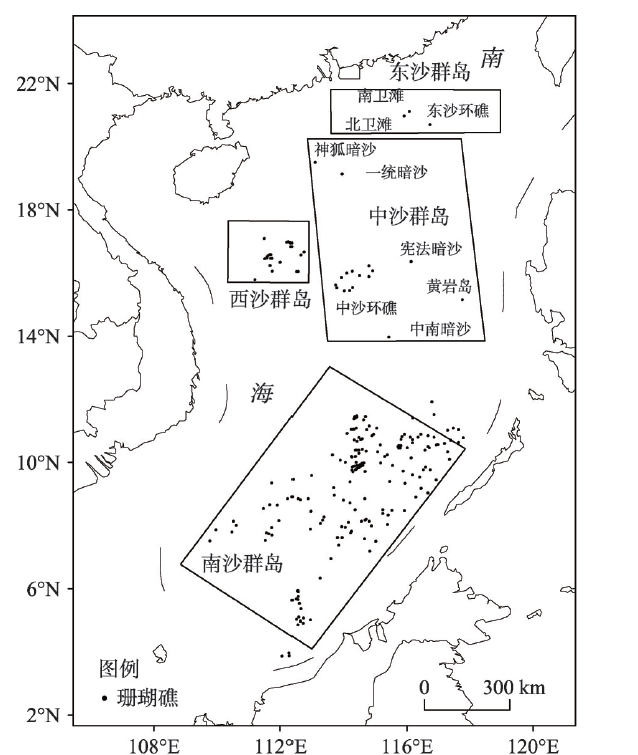 | Fig. 2 Location of the coral reefs in the South China Sea Islands |