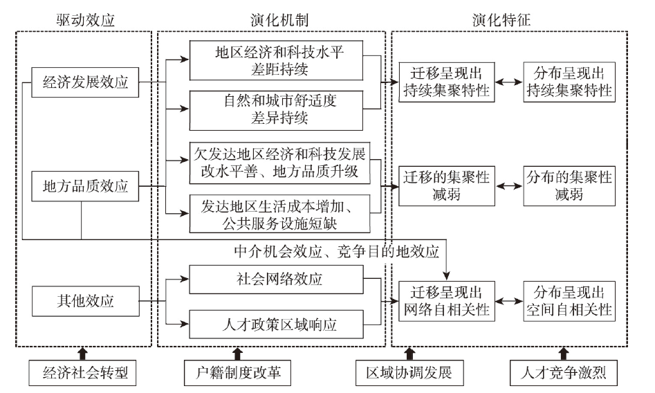 | 图2 2000—2015年间高技能人才迁移的时空演化机制 |