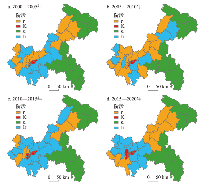 | Fig. 6 Adaptive cycle phases of each county in Chongqing City |