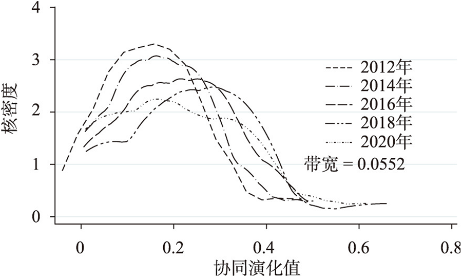 | Fig. 4 Kernel density estimation of co-evolution of tourism economy and urban ecological resilience from 2011 to 2020 |