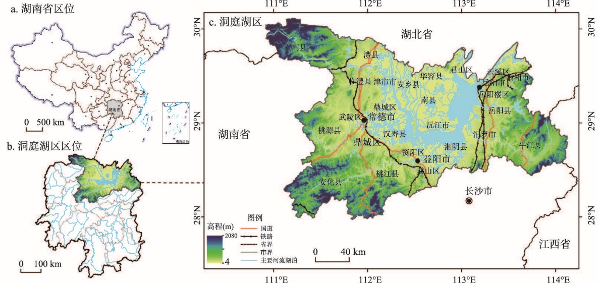 | 图3 洞庭湖区区位 注:基于自然资源部标准地图服务网站审图号为GS(2019)1823号的标准地图制作,底图边界无修改。 |